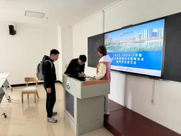 2024年4月24日体育系在国交204教室召开了社会体育指导与管理专业2023-2024学年第二学期期中学生座谈会。